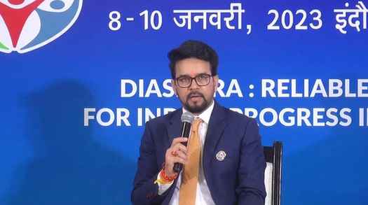 इंदौर: प्रदेश की आर्थिक राजधानी इंदौर में तीन दिवसीय प्रवासी भारतीय सम्मेलन रविवार को शुरू हुआ पहले दिन उद्घाटन सत्र को संबोधित करते हुए केंद्रीय मंत्री अनुराग ठाकुर ने विभिन्न बातें की। प्रवासी भारतीय दिवस सम्मेलन में शामिल होने आए केन्द्रिय खेल मंत्री अनुराग ठाकुर ने सत्र के दौरान प्रवासी भारतीयों को संबोधित करते हुए इंदौर के सराफा बाजार जाने के लिए कहा और कहा कि आप एक बार समय निकालकर सराफा बाजार जरूर जाए,एक बार जाएंगे तो बार-बार जाने का मन करेगा।