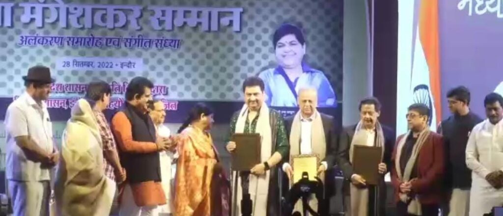 इंदौर: मप्र की आर्थिक राजधानी इंदौर में मध्यप्रदेश शासन का सबसे बड़ा सम्मान समारोह ब्रिलियंट कन्वेंशन सेंटर में आयोजिय किया गया। जिसमें पर्यटन मंत्री, इंदौर सांसद, महापौर, पूर्व महापौर ने पुरुस्कृत किया। यह अवार्ड संगीत के लिए दिया जाने वाला मध्य प्रदेश शासन का सबसे बड़ा पुरस्कार है। यह पुरस्कार स्वर कोकिला लता मंगेशकर के नाम पर दिया जाता है। जिसमें गीत संगीत मैं विशेष योगदान देने वाले कलाकारों को सम्मानित किया जाता है।