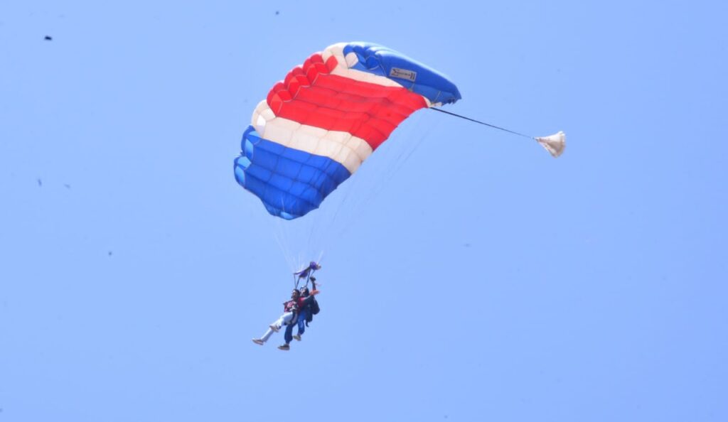 उज्जैन। प्रदेश के उच्च शिक्षा मंत्री डॉ.मोहन यादव रविवार को दताना हवाई पट्टी पर आयोजित किये जा रहे स्काई डायविंग फेस्टिवल में शामिल हुए। उल्लेखनीय है कि मप्र पर्यटन विकास निगम ने विगत 3 मार्च से उज्जैन में स्काई डायविंग का आयोजन किया जा रहा है।