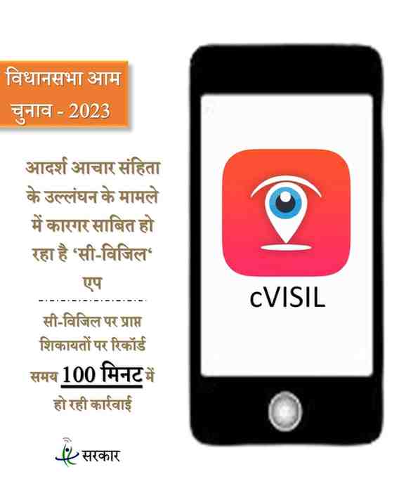 मुख्य निर्वाचन पदाधिकारी अनुपम राजन ने बताया कि प्रदेश में विधानसभा निर्वाचन 2023 के लिए 9 अक्टूबर से आदर्श आचरण संहिता प्रभावशील हुई है। आदर्श आचरण संहिता के उल्लंघन की जानकारी त्वरित मिल सके, इसके लिए भारत निर्वाचन आयोग द्वारा सी-विजिल ऐप तैयार किया गया है। यह एप आदर्श आचरण संहिता के लागू होते ही सक्रिय हो गया है। एप के माध्यम से कोई भी नागरिक आदर्श आचरण संहिता के उल्लंघन की किसी भी तरह की शिकायत फोटो, वीडियो के माध्यम से कर सकता है। शिकायत प्राप्त होते ही त्वरित निराकरण किया जा रहा है।