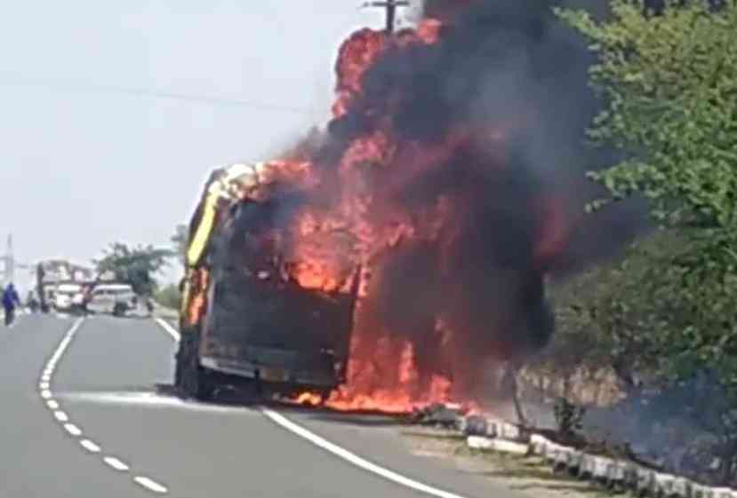 दरअसल धार जिले के तीरला थाना क्षेत्र में तिरला और बोधवाड़ा के बीच इंदौर अहमदाबाद फोरलेन पर गुजरात के जामनगर की ओर से प्लास्टिक दाना भरकर इंदौर की ओर आ रहे चलते ट्रक में अज्ञात कारणों के चलते भीषण आग लग गई। जिसमें ट्रक पूरी तरह से जलकर खाक हो गया। वही आग लगने की घटना से क्षेत्र में निकलने वाले वाहन चालकों में भी हड़कंप मच गया। जहाँ आग लगी उससे कुछ ही दूरी पर पेट्रोल पंप भी मौजूद था जिसके चलते पेट्रोल पंप कर्मियों में भी डर देखा गया। आसपास के लोगो द्वारा तुरंत फायर ब्रिगेड को सूचना दी गई और जब तक फायर ब्रिगेड मौके पर पहुंचता प्लास्टिक दाने भरा ट्रक पूरी तरह जल चुका था।