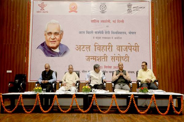 भोपाल: भारत-रत्न, संयुक्त राष्ट्र संघ में हिंदी का उद्घोष करने वाले प्रेरणा स्रोत, पूर्व प्रधानमंत्री स्व. अटल बिहारी वाजपेयी की जन्म शताब्दी पर दो दिवसीय राष्ट्रीय संगोष्ठी का आयोजन किया गया।