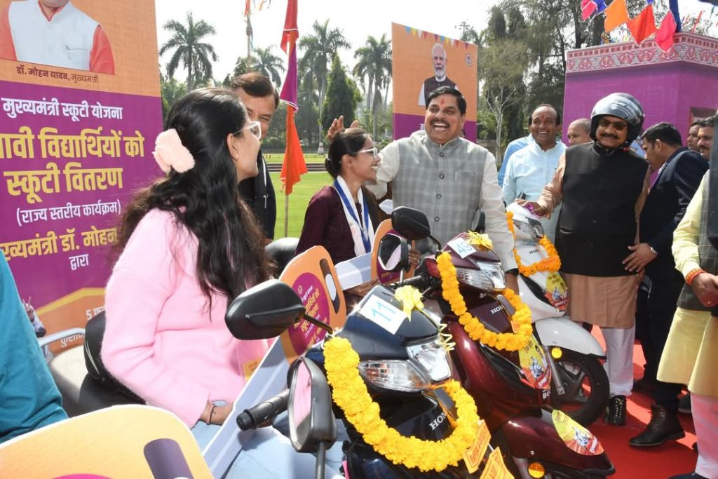मुख्यमंत्री डॉ. यादव ने समारोह में 10 मेधावी विद्यार्थियों को स्कूटी की चाबी प्रदान की तथा उनके साथ स्कूटी चलाकर उनका उत्साहवर्धन भी किया। माध्यमिक शिक्षा मंडल की कक्षा 12वीं की परीक्षा में शासकीय विद्यालयों के टॉपर्स को स्कूटी प्रदान करने की इस योजना के अंतर्गत संपूर्ण प्रदेश में 7 हजार 900 प्रतिभाशाली विद्यार्थियों को ई-स्कूटी प्रदान की जा रही है।