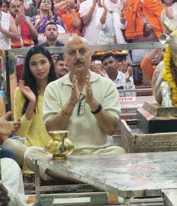 प्रसिद्ध फ़िल्म अभिनेता अनुपम खेर व अभिनेत्री शुभांगी दत्त बाबा महाकाल की भोग आरती में हुए शामिल
