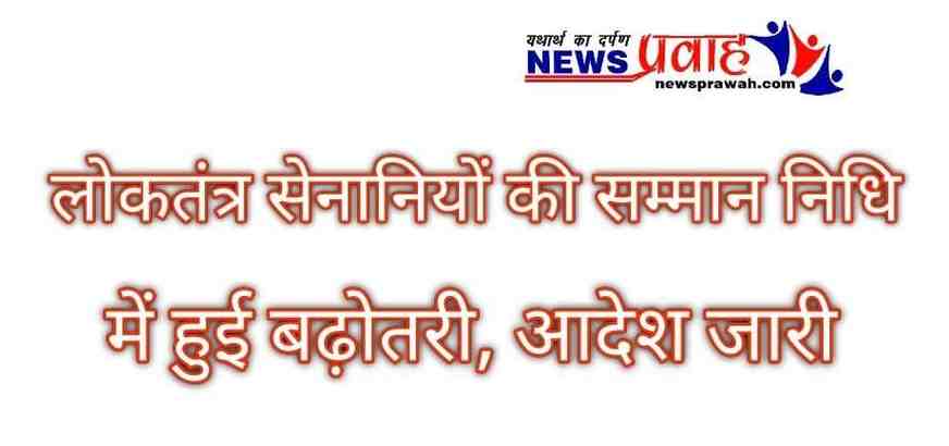 भोपाल: प्रदेश में स्वतंत्रता संग्राम सेनानी और लोकतंत्र सेनानी की सम्मान निधि अब 30 हजार रूपये मासिक हो गई है। वे स्वतंत्रता संग्राम सेनानी और लोकतंत्र सेनानी, जो एक माह से कम निरुद्ध रहे हैं, उनकी सम्मान निधि 10 हजार रूपये मासिक की गई है।