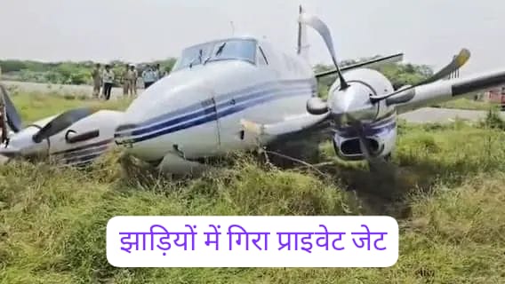 प्राप्त जानकारी के अनुसार, प्राइवेट जेट (VT-DIZ) ने मोहम्मदाबाद की हवाई पट्टी से उड़ान भरने के लिए रनवे पर करीब 400 मीटर तक दौड़ लगाई, लेकिन टेकऑफ करते ही संतुलन बिगड़ गया और जेट सीधे झाड़ियों में जा गिरा। हादसे में विमान के विंग्स, फ्रंट व्हील और जेट फैन को काफी नुकसान पहुंचा है।