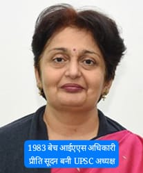 नईदिल्ली: 1983 बैच की आईएएस अधिकारी और पूर्व केंद्रीय स्वास्थ्य सचिव प्रीति सूदन को UPSC को नया अध्यक्ष नियुक्त किया गया है। प्रीति, गुरुवार, 1 अगस्त को चेयरपर्सन के तौर पर कार्यभार संभालेंगीं।