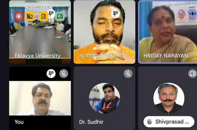 उज्जैन: हिंदी पत्रकारिता के 200वें वर्ष के सुअवसर पर न्यू मीडिया सृजन संसार ग्लोबल फाउंडेशन एवं अदम्य ग्लोबल फाउंडेशन के सहयोग से सृजन अमेरिका, सृजन मलेशिया, सृजन मॉरीशस, सृजन कतर एवं हिंदी विभाग, कला एवं मानविकी संकाय, एकलव्य विश्वविद्यालय के संयुक्त तत्वावधान में अंतरराष्ट्रीय हिंदी पत्रकारिता माह 2025 के अंतर्गत मध्यप्रदेश में हिंदी साहित्य एवं पत्रकारिता : विविध आयाम विषय पर अंतरराष्ट्रीय संगोष्ठी आयोजित की गयी।