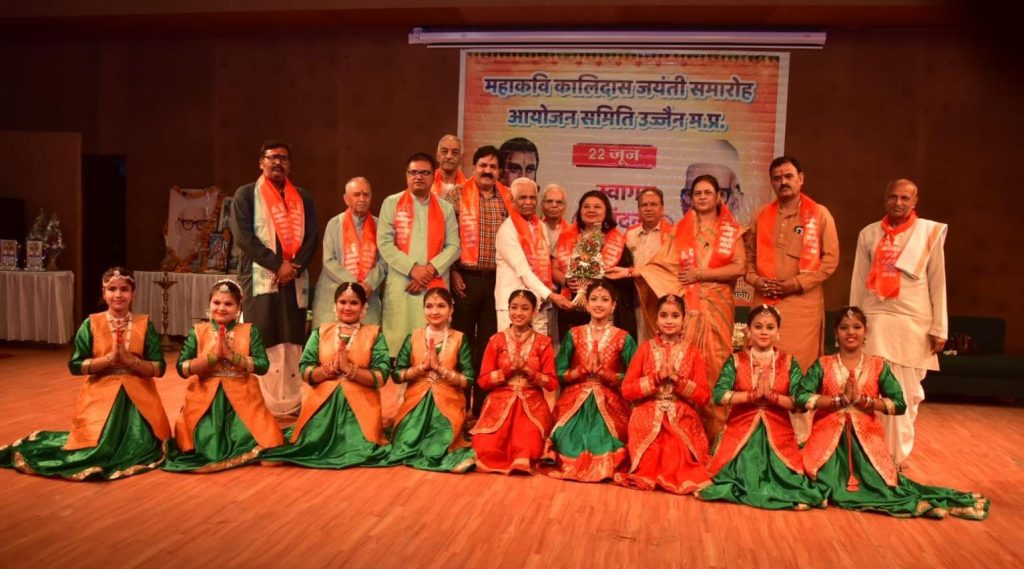 उज्जैन: पं. मोरेश्वर शास्त्री समिति द्वारा महाकवि कालिदास जयन्ती का आयोजन महाकाल लोक स्थित त्रिवेणी संग्रहालय में किया गया। सर्व प्रथम सभी अतिथियों ने महाकवि कालिदास, माँ सरस्वती एवं पं. मोरेश्वर शास्त्री के चित्र पर पुष्प माला अर्पित कर कार्यक्रम का शुभारंभ किया। 21 बटुक पंडितों द्वारा स्वस्ति वाचन किया गया। तत्पश्चात् मातृ शक्तियों ने श्री गणेश वंदना एवं शिव आराधना से उपस्थित सभी का मन मोहा।
