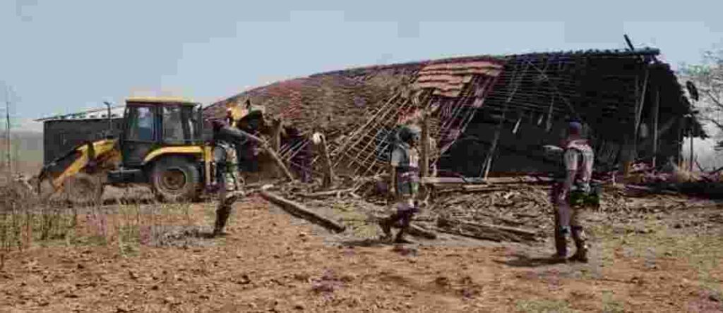 जंगल में अतिक्रमण कर रहे अतिक्रमणकारीयो पर बड़ी कार्रवाई 15 लीडरों के 40 मकान जेसीबी से किये ध्वस्त