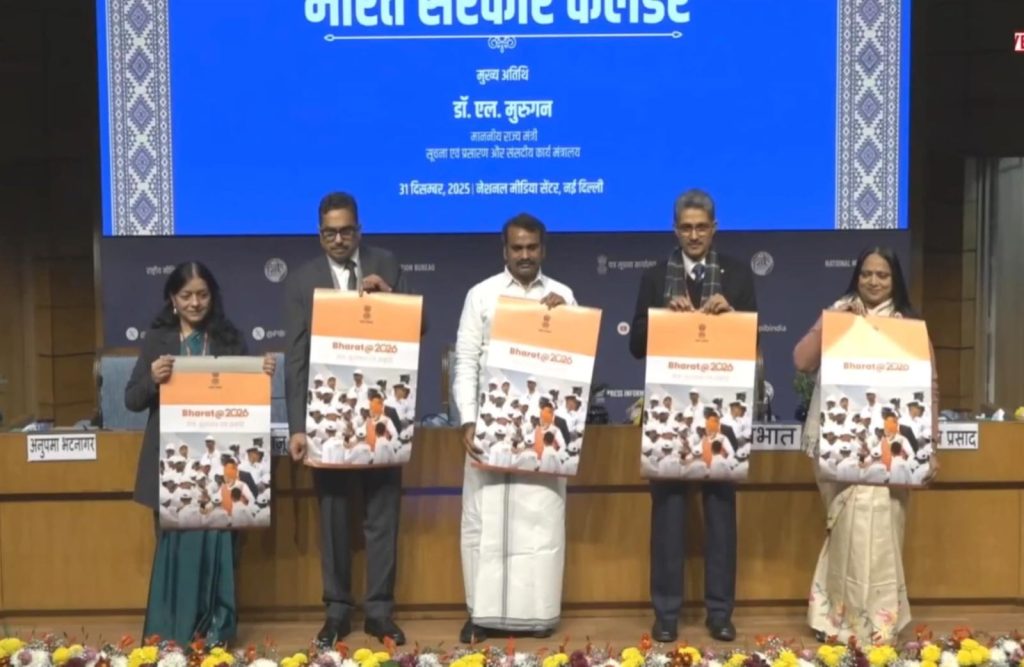 नईदिल्ली: भारत सरकार ने नए साल 2026 का कैलेंडर जारी कर दिया है। सूचना और प्रसारण राज्य मंत्री एल मुरगन ने 2026 का कैलेंडर जारी किया। 2026 के कैलेंडर में हर महीने की अलग थीम रखी गई है और प्रधानमंत्री नरेंद्र मोदी की तस्वीरें हैं।