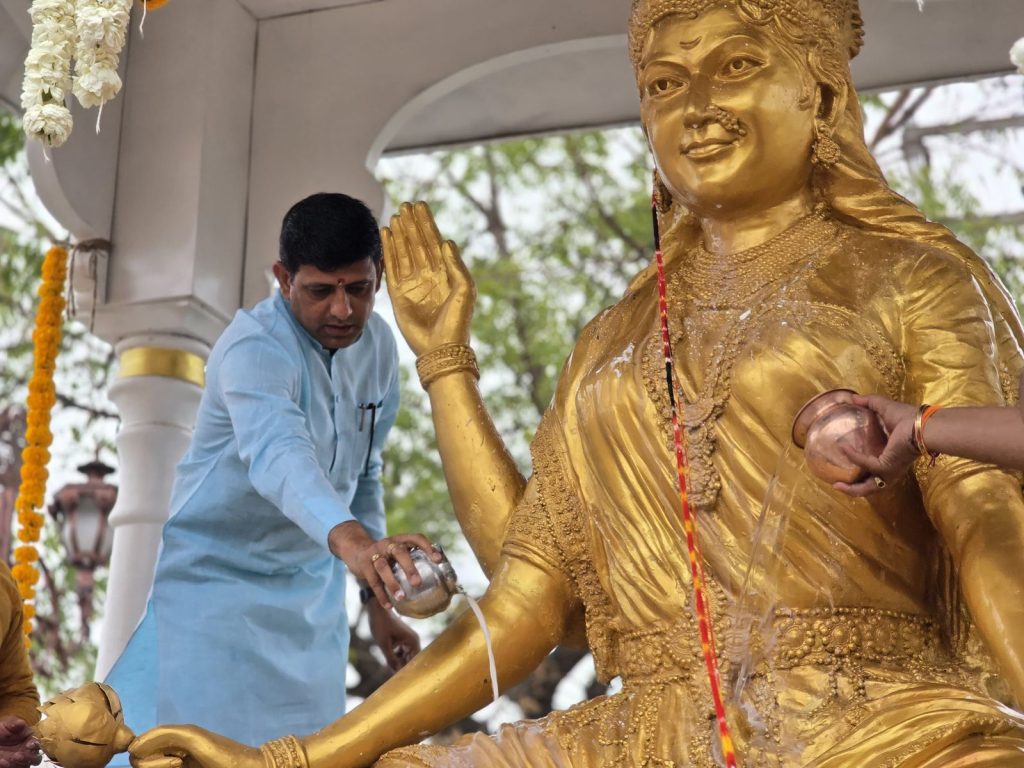 धूमधाम से मनाई जा रही माँ नर्मदा जयंती, महापौर ने नर्मदा प्रतिमा पर दूध एवं जल से अभिषेक कर किया विधिवत पूजन