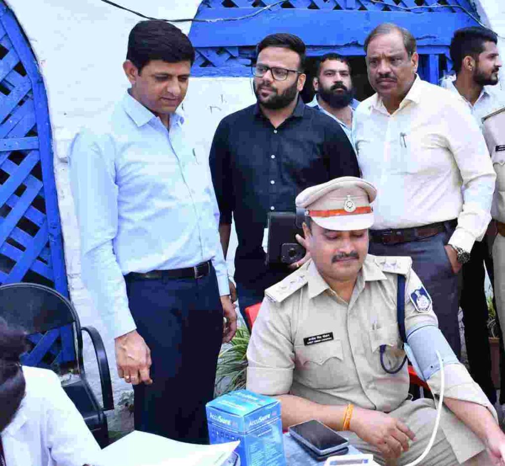 यातायात प्रबंधन पुलिस के अधिकारी कर्मचारी रात-दिन धूप, ठंड, बारिश में लगे रहते हैं, इस दौरान वह अपने स्वास्थ्य पर ध्यान नहीं दे पाते हैं ऐसे में कई बीमारियों के शिकार भी हो जाते हैं। आज जो शिविर आयोजित किया गया है इसके लिए मैं एक कदम मदद की ओर सेवा समिति एवं एनकी संस्था को बहुत-बहुत धन्यवाद देता हूं इस तरह के आयोजन लगातार करवाएं । डीसीपी, यातायात प्रबंधन मनीष कुमार अग्रवाल ने कहा कि यातायात प्रबंधन पुलिस की टीम शहर के यातायात को सुगम, सुरक्षित एवं सुखद बनाने में हर संभव प्रयास करेगी। बेहतर स्वास्थ्य के फायदे बताते हुए कहा कि यदि आप स्वस्थ की दृष्टि से सुरक्षित रहेंगे तभी आप दूसरों की सुरक्षा कर पाएंगे। यदि आप बीमार हैं तो आप स्वयं तो परेशान रहेंगे, साथ ही आपके अपने भी चिंतित रहेंगे।इसलिए इस बात का विशेष ध्यान रखें कि मासिक अपना स्वास्थ्य चेकअप करवाएं यदि किसी भी तरह की बीमारी पाई जाती है तो उसे उसका इलाज बीमारी के बढ़ने से पहले ही करवा ले।