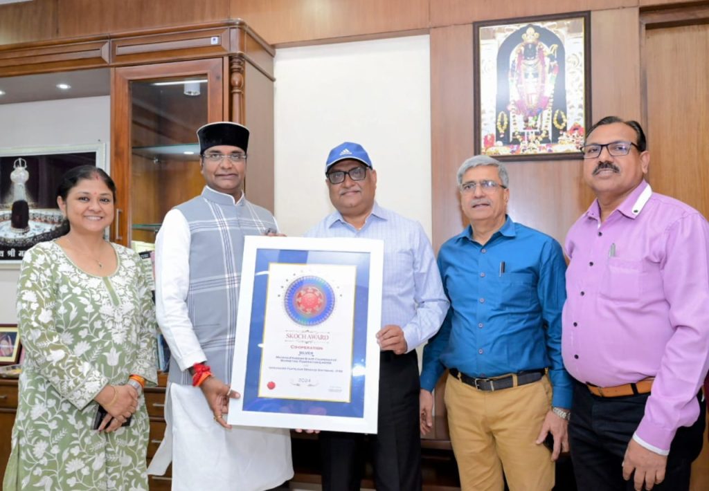 नई दिल्ली के इण्डिया हेबिटेड सेंटर में आयोजित 100वें राष्ट्रीय स्कॉच समिट में मध्यप्रदेश के सहकारिता विभाग के राज्य सहकारी विपणन संघ (मार्कफेड) को उनके फर्टिलाइजर सप्लाई चैन ऑटोमेशन प्रोजेक्ट आईएफएसएस को प्रतिष्ठित स्कॉच अवॉर्ड से सम्मानित किया गया।