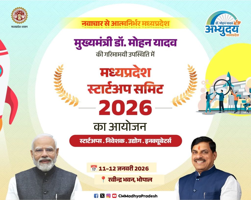 स्टार्टअप समिट 2026, 11-12 जनवरी को भोपाल में, निवेश और रोजगार सृजन को मिलेगा नया आयाम