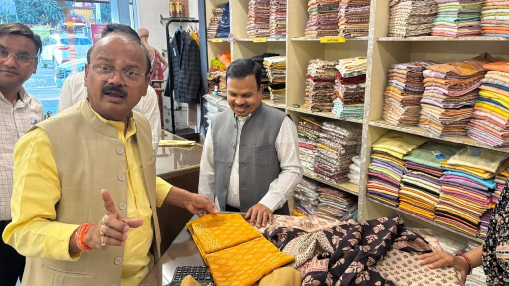 भोपाल: कुटीर एवं ग्रामोद्योग राज्य मंत्री (स्वतंत्र प्रभार) दिलीप जायसवाल ने भोपाल स्थित मृगनयनी, कबीरा और विंध्यावैली स्टोर का निरीक्षण कर स्वदेशी उत्पादों की खरीदारी की। इस दौरान उन्होंने जनता से शुद्ध और उत्कृष्ट खादी व स्वदेशी उत्पाद अपनाने का अनुरोध किया।