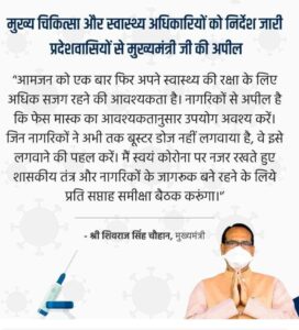1 min read कोरोना को लेकर एमपी सरकार अलर्ट, प्रदेशभर के सीएमएचओ को निर्देश जारी कर सीएम ने आमजन से की अपील December 23, 2022 owner