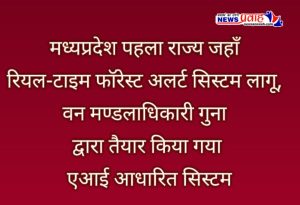 1 min read मध्यप्रदेश पहला राज्य जहाँ रियल-टाइम फॉरेस्ट अलर्ट सिस्टम लागू, वन मण्डलाधिकारी गुना द्वारा तैयार किया गया एआई आधारित सिस्टम April 29, 2025 owner
