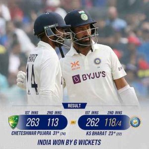 1 min read टीम इंडिया ने ऑस्ट्रेलिया को दूसरे टेस्ट में 6 विकेट से हराया, सीरिज में 2-0 की अजेय बढ़त ली February 19, 2023 owner
