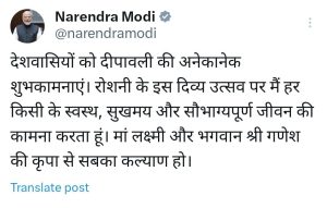 1 min read प्रधानमंत्री नरेंद्र मोदी ने देशवासियों को दी दीपो के पर्व दीपावली की शुभकामनाएं, एक्स पर यह लिखा October 31, 2024 owner
