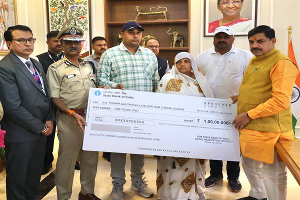 मुख्यमंत्री डॉ. यादव ने इस अवसर पर कहा कि कर्तव्य निवर्हन के दौरान अपने प्राणों को उत्सर्ग करने वाले पुलिस उपनिरीक्षक रामचरण गौतम की पत्नी श्रीमती पुष्पा को चेक प्रदान करते हुए कहा कि राज्य शासन ने स्व. गौतम को शहीद का दर्जा देते हुए उनके आश्रितों को एक करोड़ रुपए की सहायता राशि स्वीकृत की है।