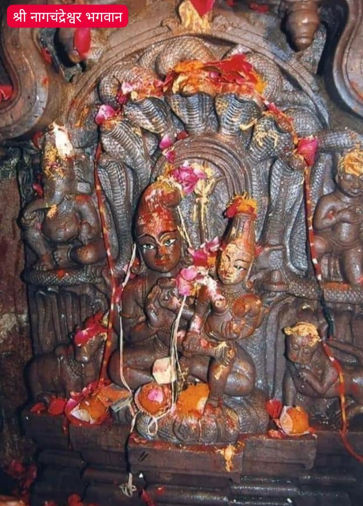 उल्लेखनीय है कि महाकालेश्वर मंदिर में गर्भ गृह में ज्योतिलिंग बाबा महाकाल, दूसरे खंड में ओंकारेश्वर और तीसरे खंड में नागचन्द्रेश्वर का मंदिर है। माना जाता है कि इस प्राचीन मंदिर का निर्माण 1050 ईस्वी में परमार राजा भोज ने करवाया था। इसके बाद महाराज राणोजी सिंधिया ने सन 1732 में महाकाल मंदिर का जीर्णोद्धार किया था। माना जाता है कि नागचंद्रेश्वर की दुर्लभ प्रतिमा 11वीं शताब्दी में नेपाल से लाकर मंदिर में स्थापित की गई थी। इस प्रतिमा में फन फैलाए नाग के आसन पर शिव जी पार्वती के साथ बैठे हैं। संभवत: दुनिया में ये एकमात्र ऐसी प्रतिमा है, जिसमें शिव जी नाग शैय्या पर विराजित हैं। मंदिर में गणेश जी, सप्तमुखी नाग देव और दोनों के वाहन नंदी और सिंह भी विराजित हैं। शिव जी के गले और भुजाओं में नाग लिपटे हैं।