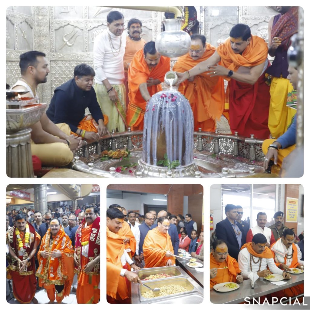 उज्जैन(डॉ हीना तिवारी) : केंद्रीय स्वास्थ्य मंत्री एवं भाजपा के राष्ट्रीय अध्यक्ष जेपी नड्डा सोमवार देर रात मुख्यमंत्री डॉ. मोहन यादव के साथ उज्जैन पहुंचे। प्रवास के दौरान उन्होंने विश्व प्रसिद्ध श्री महाकालेश्वर मंदिर में भगवान महाकाल के दर्शन किए और शयन आरती में सम्मिलित होकर आशीर्वाद लिया।